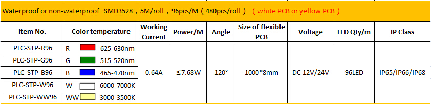 - LED quantity: 30PCS/M, 60pcs/M, 96pcs/M, 120pcs/M